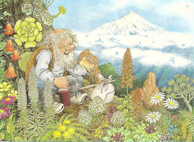 Смекнул Флибустьеро, что за напасть стряслась. Кивнул и пошел в лес, якобы выполняя их волю. А на самом деле отошел недалече, созвал зверей и попросил собрать чего-нибудь, чтоб деток накормить. А сам отправился к горе собрать нужных травок.